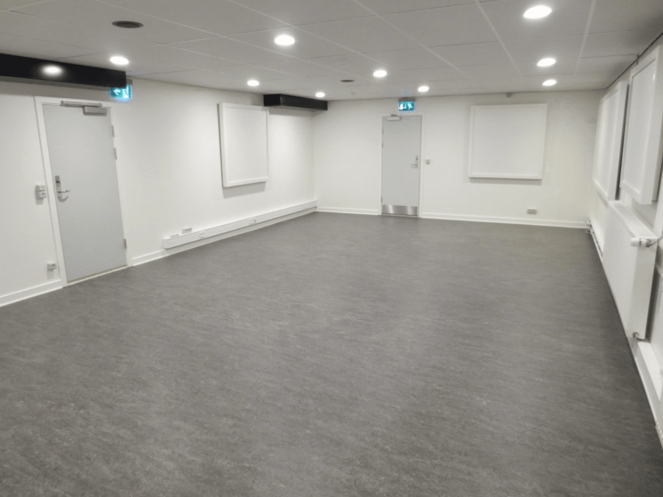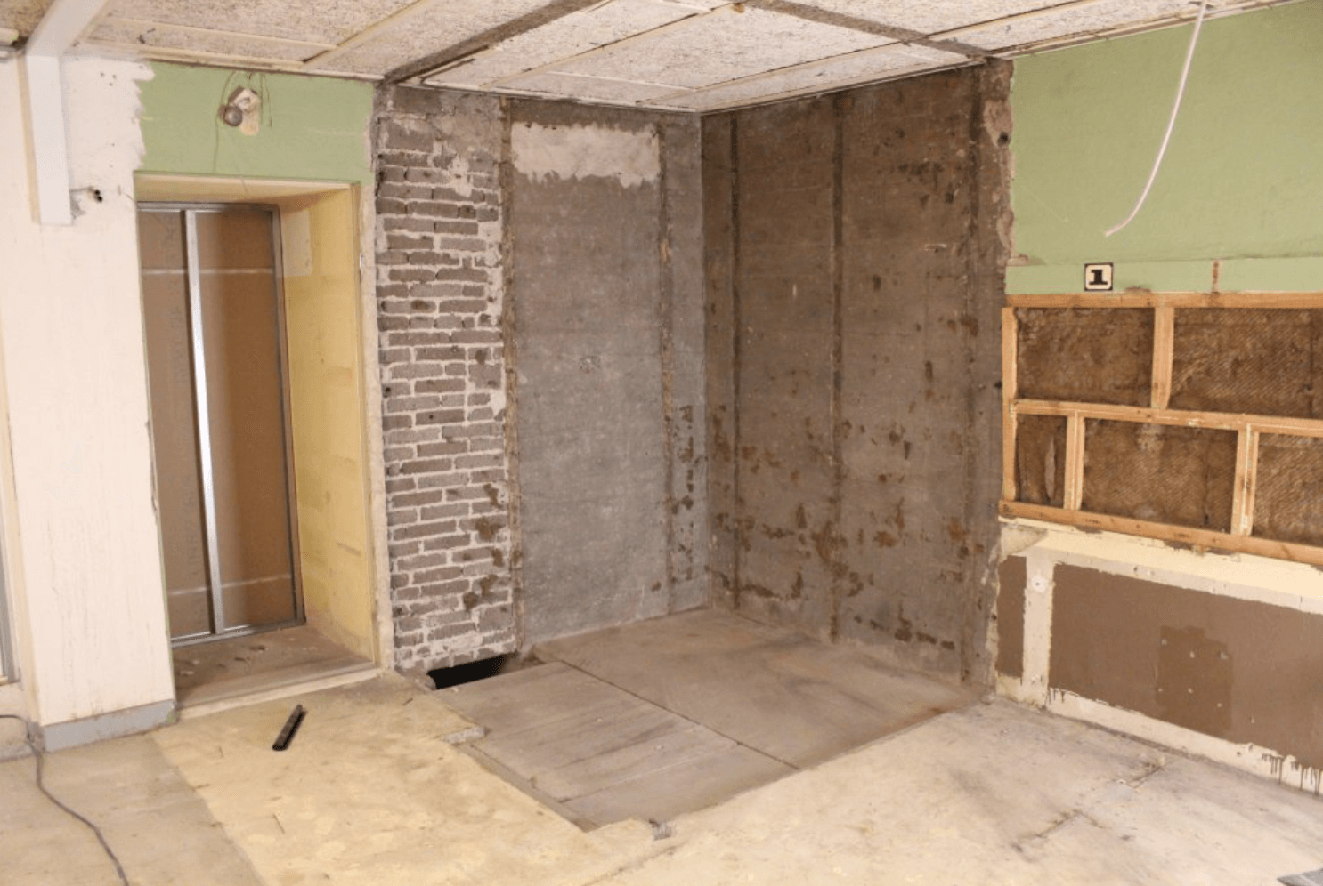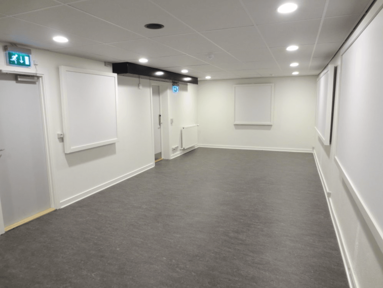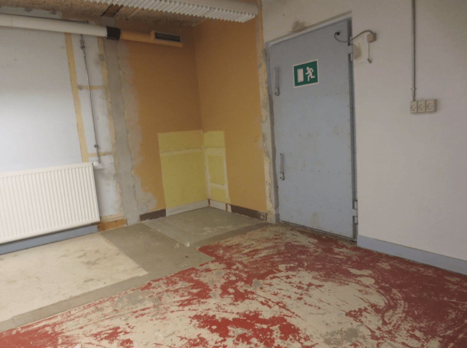 Som I kan se, trængte rummene til en kærlig hånd. Efter renoveringen vil der være monteret ny gulvbelægning, og ligeledes vil der blive taget hånd om vægge og lofter (20/4-2015).