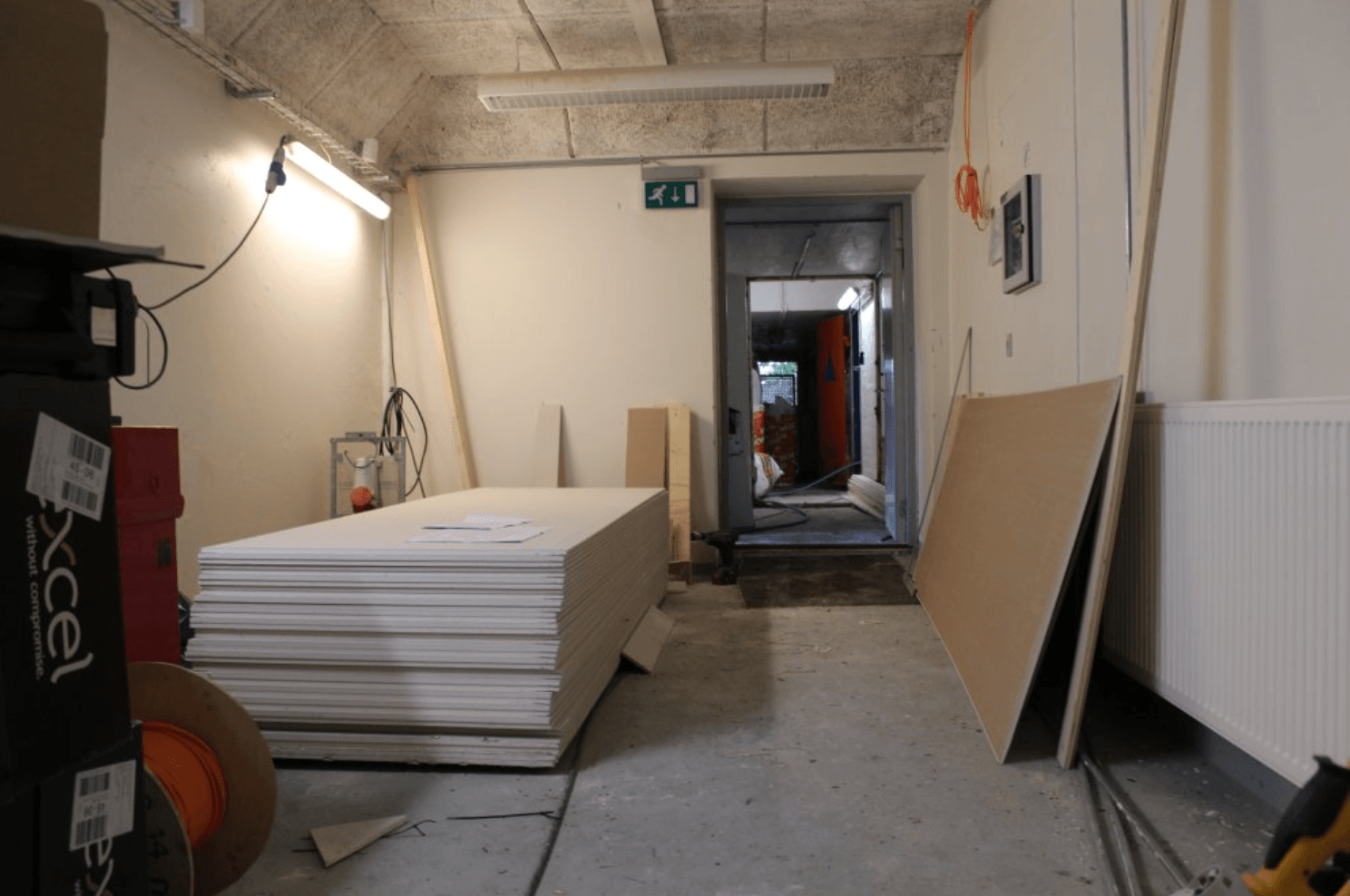 Der skulle bruges utallige gipsplader til de mange vægge (26/8-2015) .
