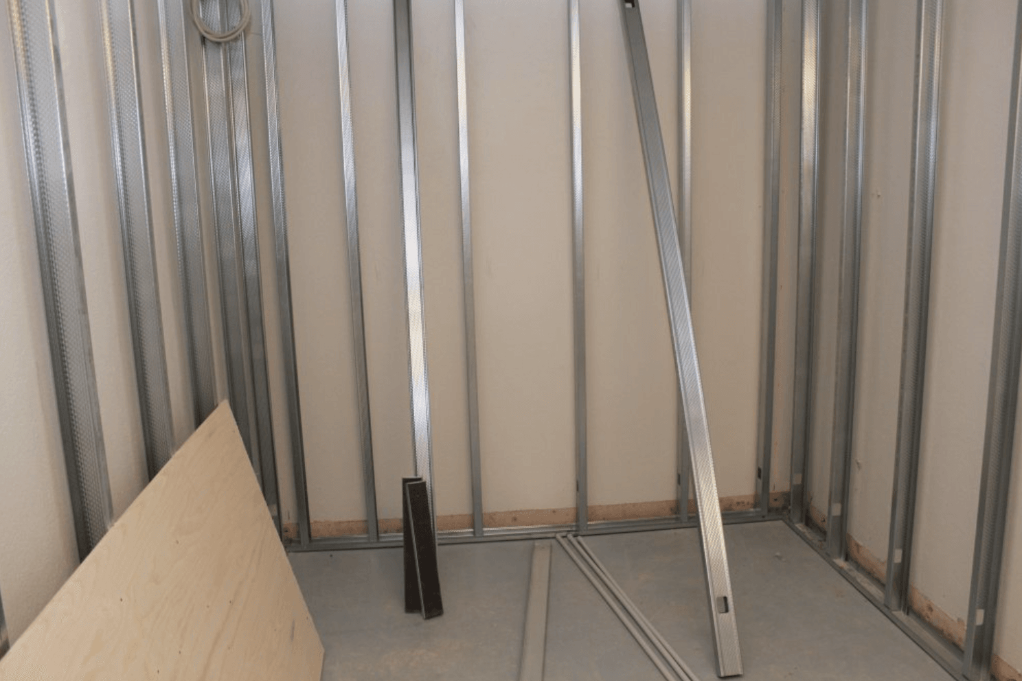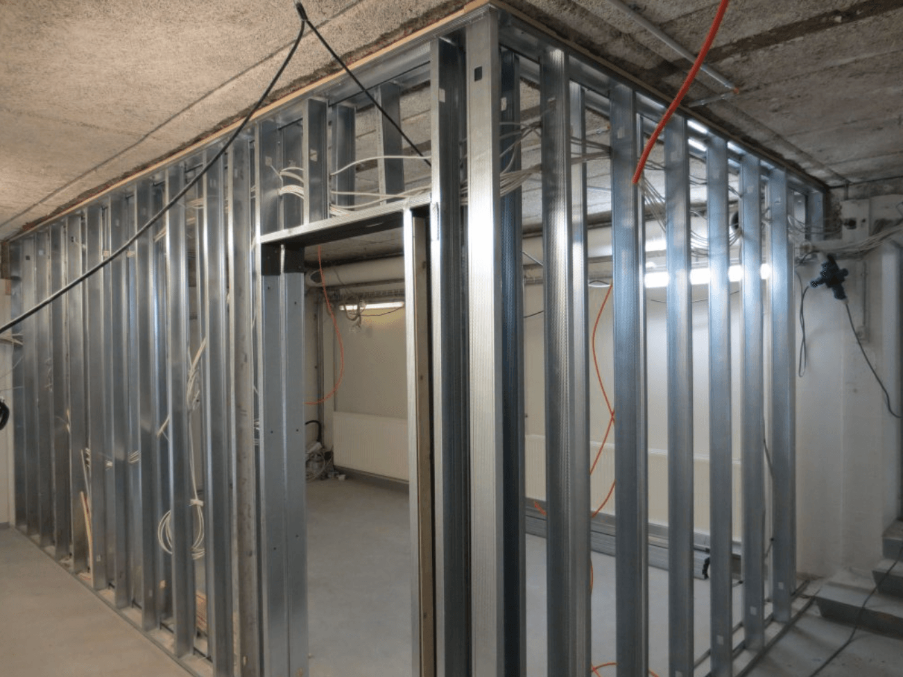 Der blev monteret stålprofiler til gulv og loft (26/8-2015).
