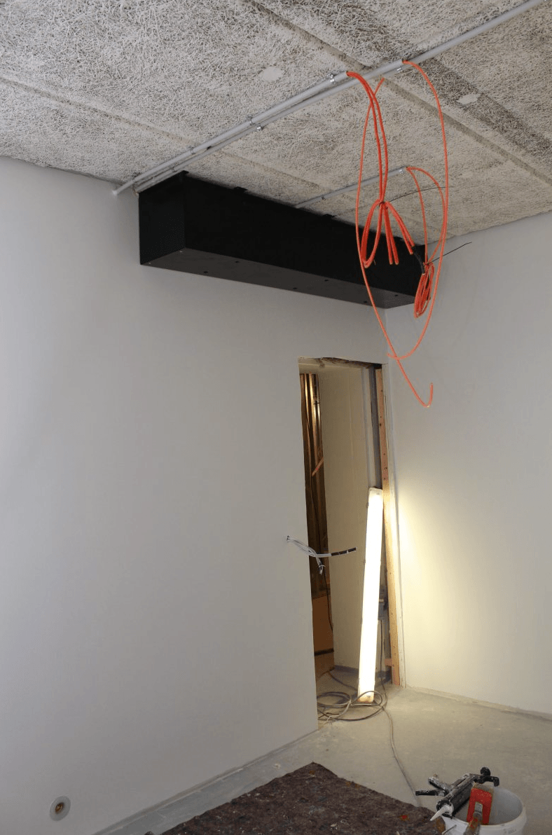Her ses et af vores ventilationssystemer. Der er to af disse i hvert rum (11/9-2015).